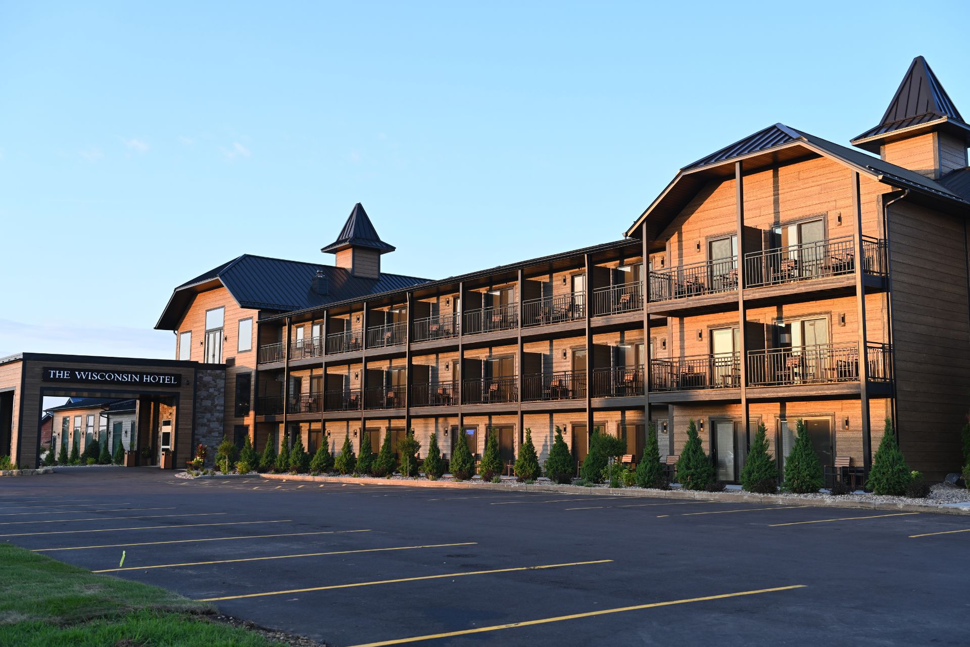 The Wisconsin Hotel is a full-service hotel that offers a range of accommodations from standard suites to spacious one- and two-bedroom retreats, all designed with custom furniture and decor inspired by Wisconsin’s natural beauty and heritage. Guests can dine on-site at Farmer in the Dells, a restaurant focused on locally sourced Wisconsin ingredients, and unwind at The Silo Bar, a rooftop cocktail lounge with views of the surrounding area. Beyond leisure stays, the hotel caters to groups and corporate travelers with a conference center, event spaces suitable for weddings and family reunions, and facilities for sporting teams and youth sports groups. The property positions itself as a home base for exploring the broader Wisconsin Dells region, blending Midwest warmth with modern amenities for both family vacations and special events.
