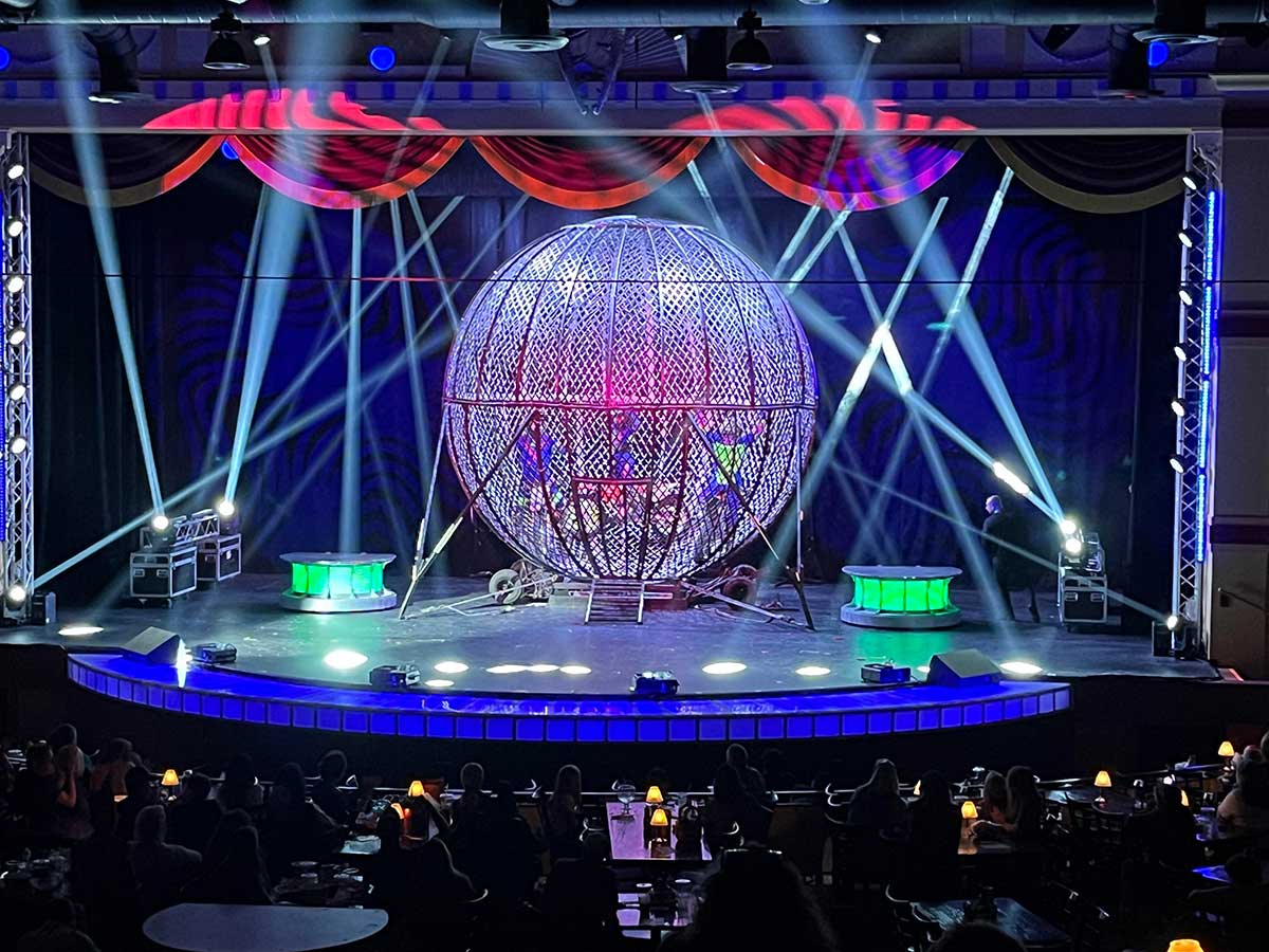 The epic finale Motorcycle Globe of Death will feature three motorcycle stunt riders who will ride motorcycles with special LED lighting. They will ride crisscross, all around and completely upside down in a giant ball of steel, defying gravity. “This show will be full of audience participation and immersive experiences,” Nock said. “Come have fun with us! There’s something for everyone from ages 3 to 93! Four generations of family members can all be laughing at the same joke, and they can all create everlasting memories. If they have seen my shows before, this will be an all-new production, and there will be something different each and every show with hysterical audience participation.