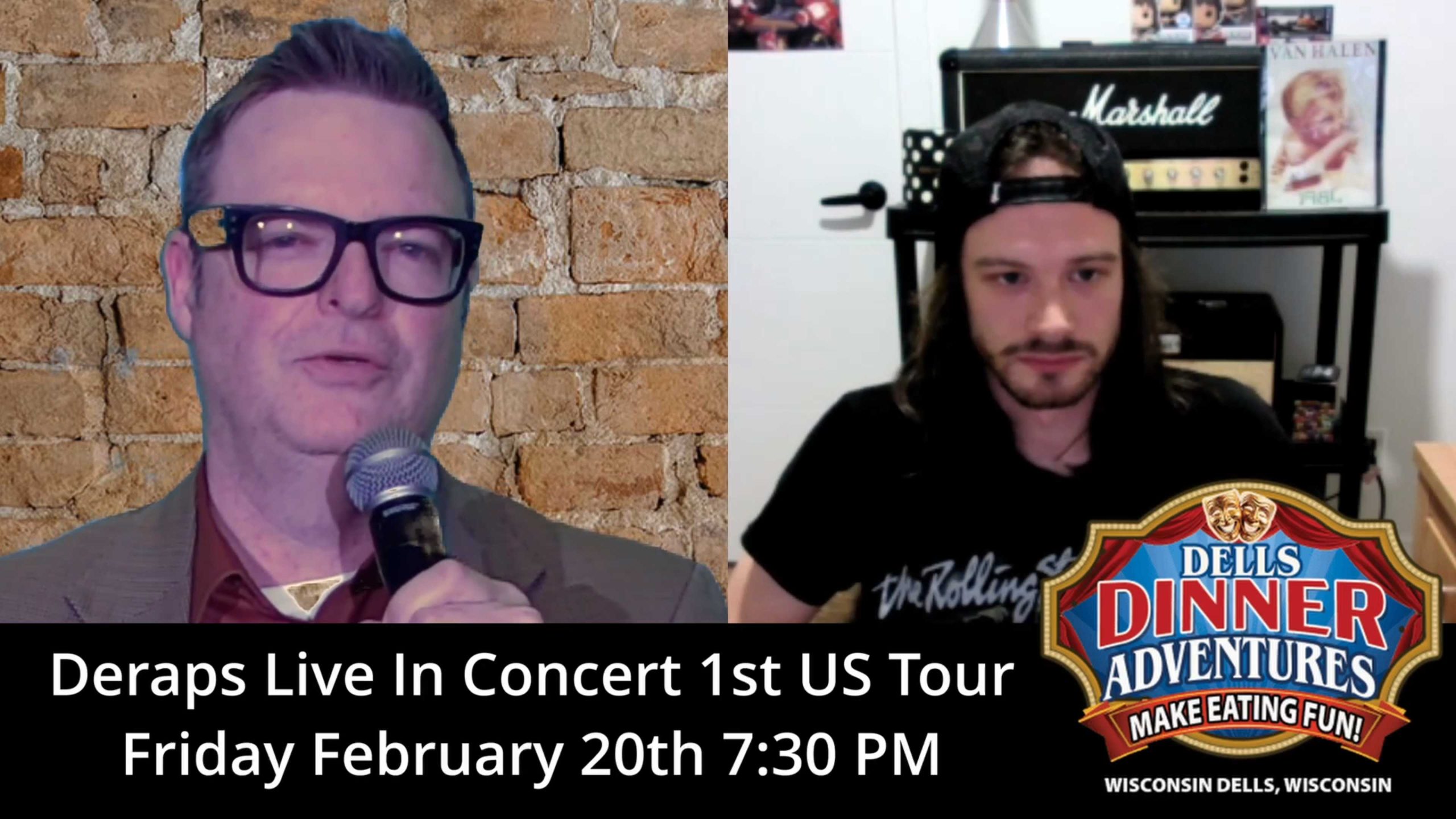 Get to know Deraps in this exclusive interview recorded before their performance at Dells Dinner Adventures in Wisconsin Dells on Friday, February 20, 2026 at 7:30 PM. This electrifying classic rock-inspired duo brings their “Viva Rock N’ Roll Tour 2026” energy to the stage, combining blistering riffs with raw rock attitude for an unforgettable night.